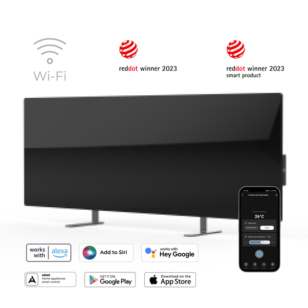 Обігрівач AENO виготовлений із преміальних матеріалів. Мінімалістичний дизайн реалізований в корпусі 11 мм із загартованого скла та алюмінієвими ніжками. Елегантність у кожній деталі. Дизайнерське рішення для обігріву приміщень.