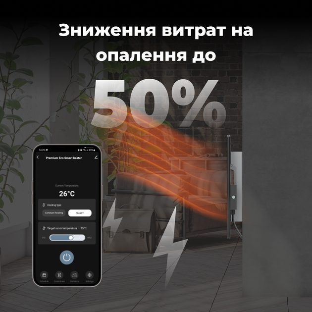 Встановіть і підтримуйте комфортну температуру для економії енергіїОбігрівач споживає лише 160 Вт, порівняно з 700+ Вт при 120° C. Це допомагає уникнути перегріву та втрати енергії. Коли ви встановлюєте температуру панелі обігрівача на 60°C, вона виробляє 160 Вт на годину, чого достатньо для підтримки комфортної температури в кімнаті. | ![]() |