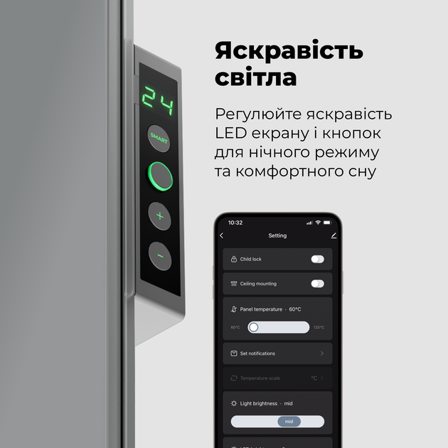 Налаштуйте яскравість світлодіодного екрана та кнопок для нічного режиму та комфортного сну.