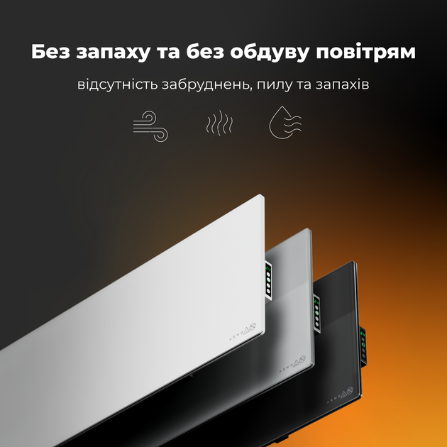 Працює тихо та не виділяє неприємних запахівІнфрачервоний електричний обігрівач AENO не сушить повітря та не спалює кисень в будинку. Це зберігає поточний баланс вологості в кімнаті для комфорту всієї родини. Обігрівач AENO не видуває повітря та не підіймає пил. Він не виділяє шкідливих речовин, неприємних запахів та не створює додаткового шуму. | ![]() |
