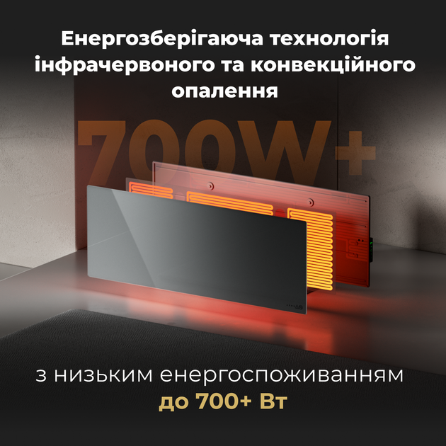 ![]() | Енергозберігаюча технологія інфрачервоного опаленняІнфрачервона нагрівальна панель з низьким енергоспоживанням – до 700+ Вт. Обігрівач зосереджує свою енергію на нагріванні предметів, а не тільки повітря навколо себе, створюючи відчуття тепла. |