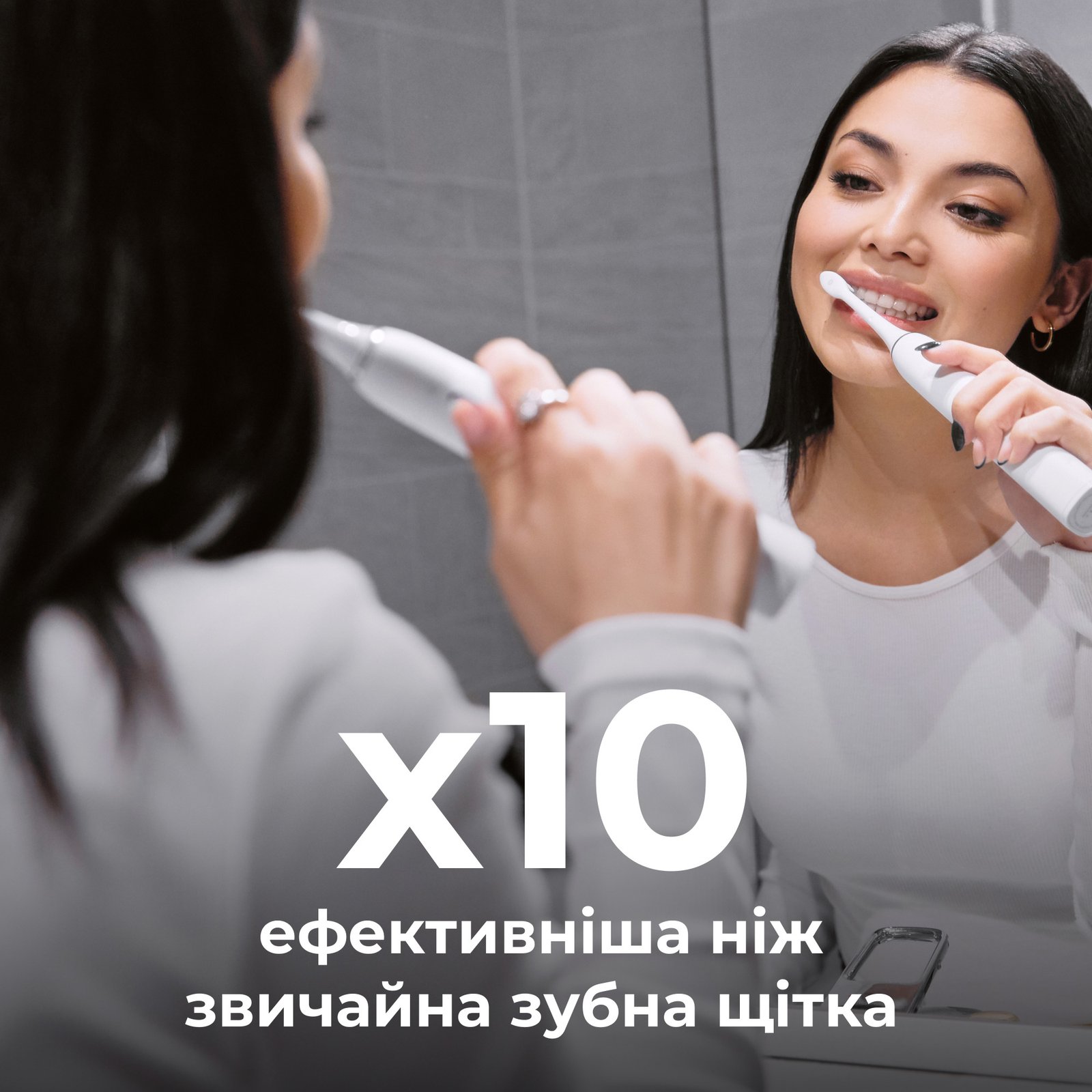 Звукова зубна щітка видаляє набагато більше нальоту, ніж мануальна, з поверхні зубів і вздовж лінії ясен, не травмуючи ясна і не пошкоджуючи емаль