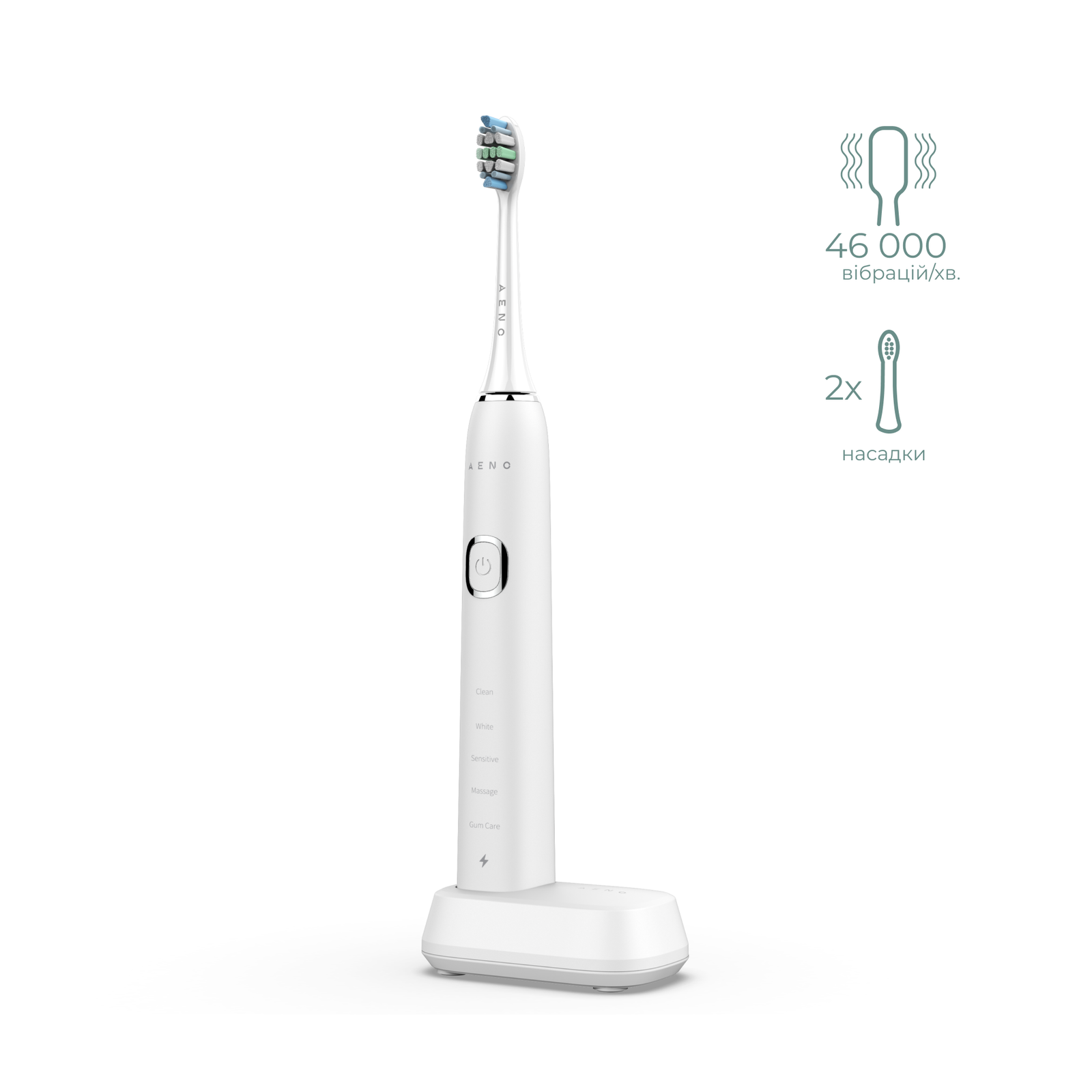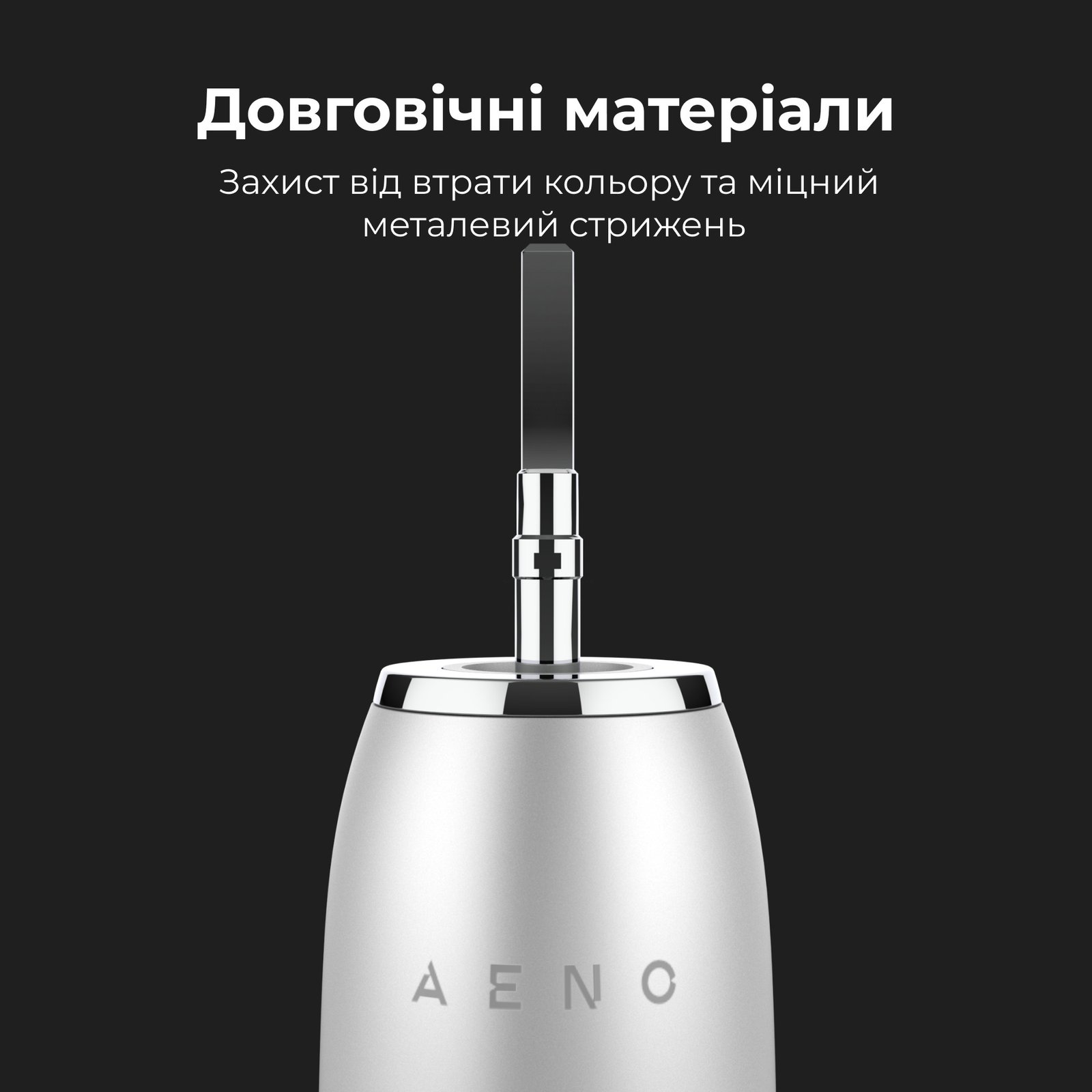 Звукові зубні щітки AENO виготовлені з міцних, надійних матеріалів. Корпус пристрою має захист від вицвітання кольору і містить всередині міцний металевий стрижень
