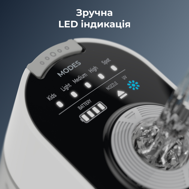 5 режимів чищення для будь-яких потребЗубний іригатор AENO DI3 має п’ять режимів — дитячий, легкий, середній, інтенсивний та точковий — для ефективного очищення. Він підходить для чутливих ясен, делікатного догляду за дитячими зубами або глибокого очищення від нальоту. Іригатор адаптується до ваших потреб, забезпечуючи комфорт і чистоту. | ![]() |