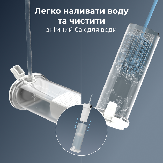 Професійне чищення в домашніх умовахОтримайте результат, як після візиту до стоматолога! Високочастотні імпульси води ефективно видаляють забруднення, масажують ясна і дарують відчуття свіжості. | ![]() |