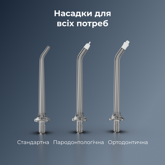 ![]() | Маневреність: насадки обертаються на 360°Магнітні насадки DI3 з обертанням на 360° забезпечують максимальну гнучкість. Завдяки цій конструкції ви легко можете змінити кут струменя води, очищаючи кожен куточок рота без зусиль. |