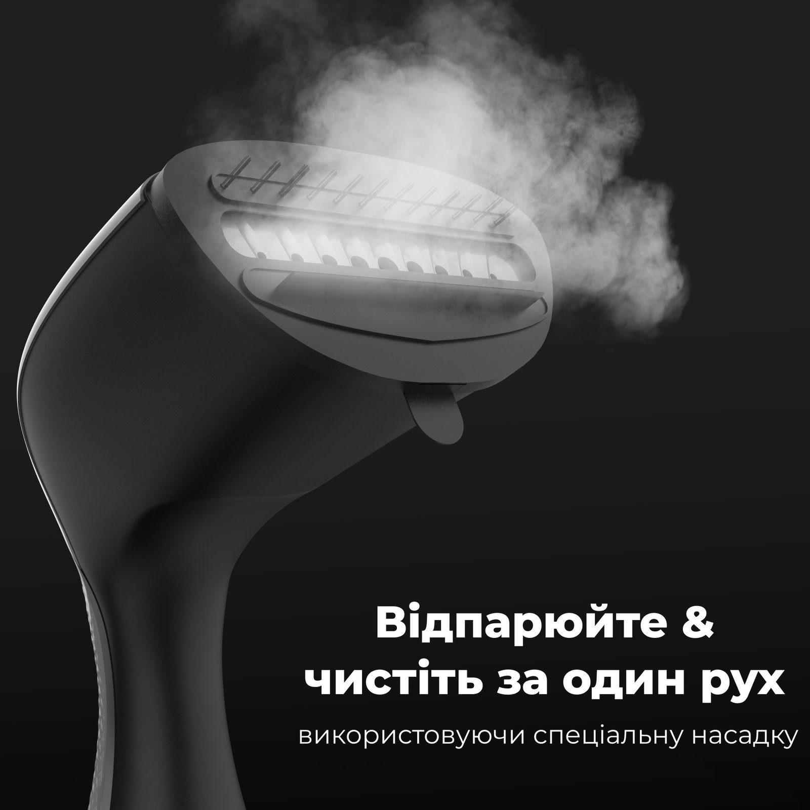 Спеціальна щітка одночасно видаляє липке волосся або дрібне сміття та обробляє одяг парою. Легко знімається при необхідності