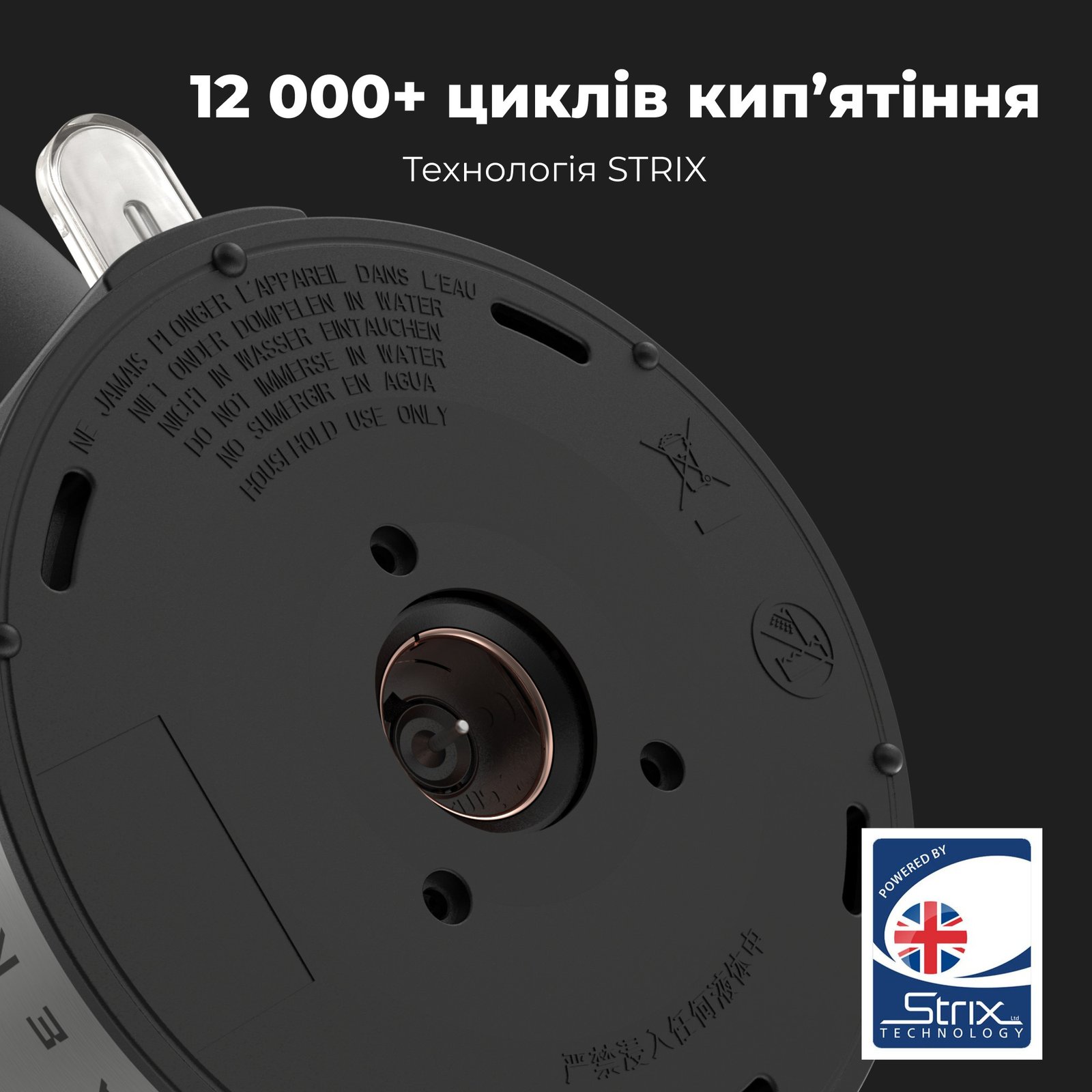 Чайник оснащений функцією автоматичного вимкнення, щоб запобігти поломці пристрою та травмам. Електричні контакти приладу приховані гумовим ущільнювачем, який захищає від потрапляння пилу та вологи