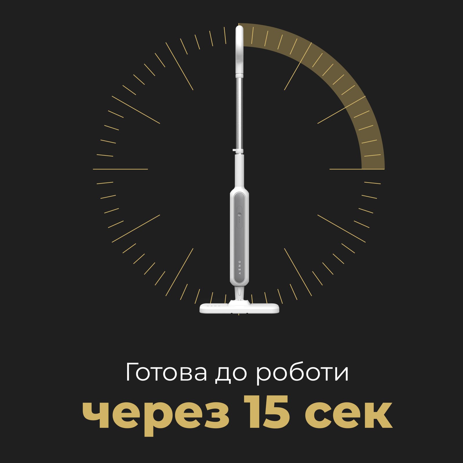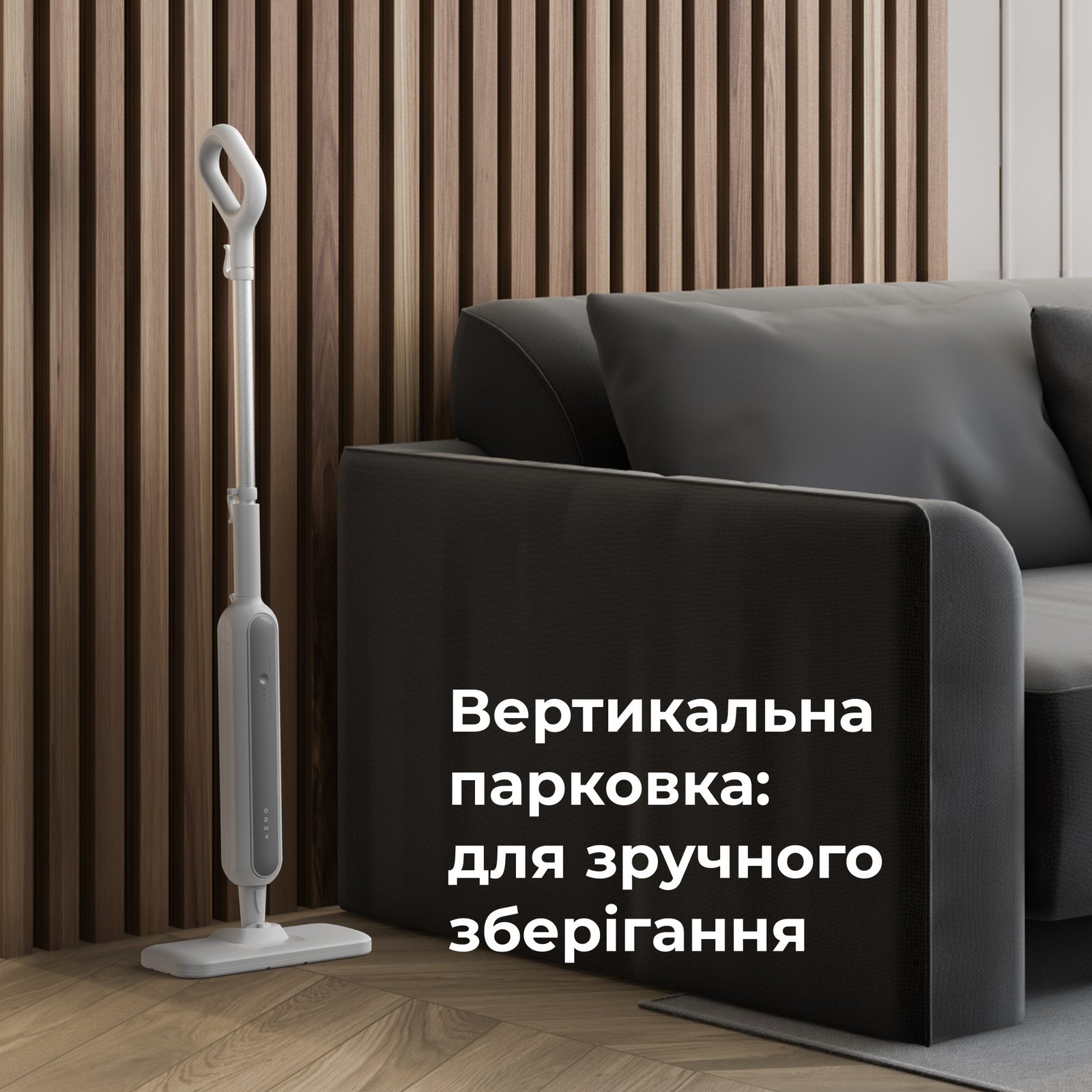Коли вам потрібно припинити використання пароочисника – просто залиште його у вертикальному положенні, після клацання він зафіксується і буде стояти самостійно. Дуже зручний для компактного зберігання