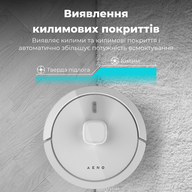 Автоматичне виявлення килимового покриттяAENO RC8S самостійно визначає, на якому типі поверхні працює, та автоматично регулює потужність всмоктування. | ![]() |